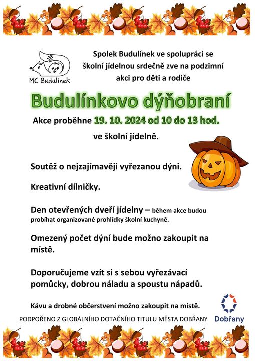 Během dýňobraní proběhne i Den otevřených dveří ve školní jídelně.
