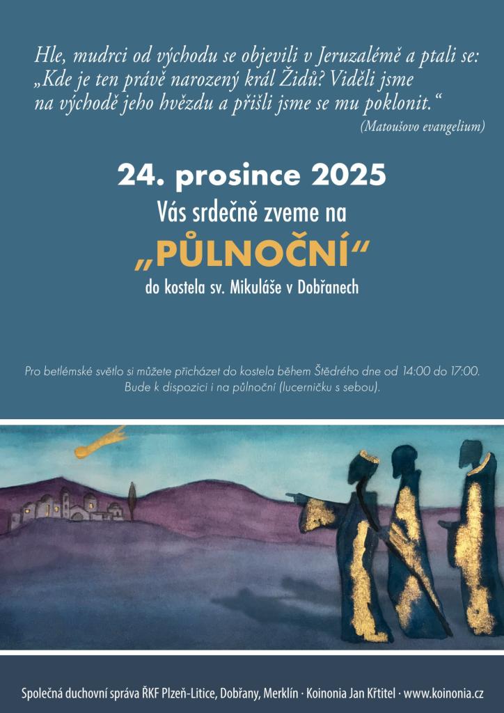 Koinonia Jan Křtitel zve na Půlnoční mši do kostela sv. Mikuláše v Dobřanech.