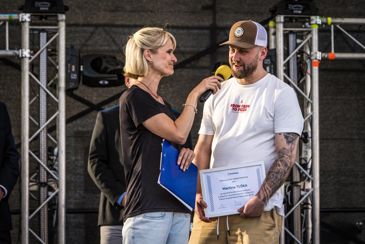 Starosta Martin Sobotka s místostarostou Michalem Trdličkou předali ocenění za reprezentování města nejlepšímu výčepnímu v ČR Martinovi Tuškovi, kuželkářům Anežce Blechové a Josefovi Fišerovi nejml., rybářům Barboře, Štěpánovi a Davidovi Šmůlovým, oddílu stolního tenisu TJ Dobřany a lidové muzice Vozembach. Poté až do půlnoci patřilo pódium kapelám Sifon rock a Imagine Diamonds.
